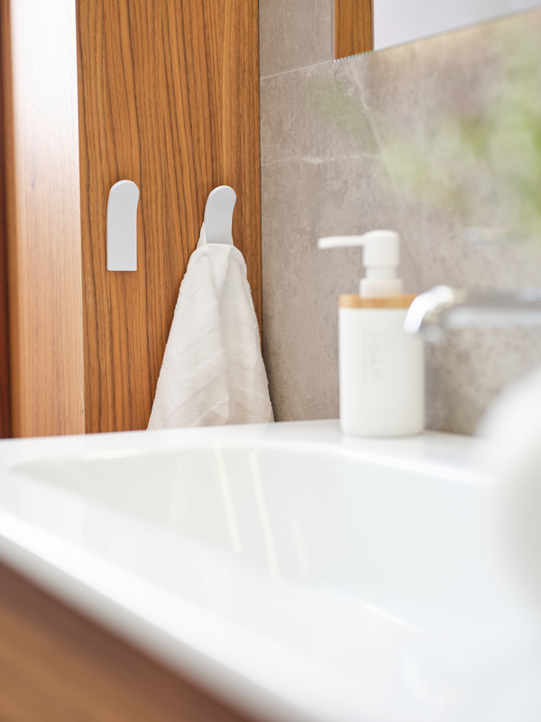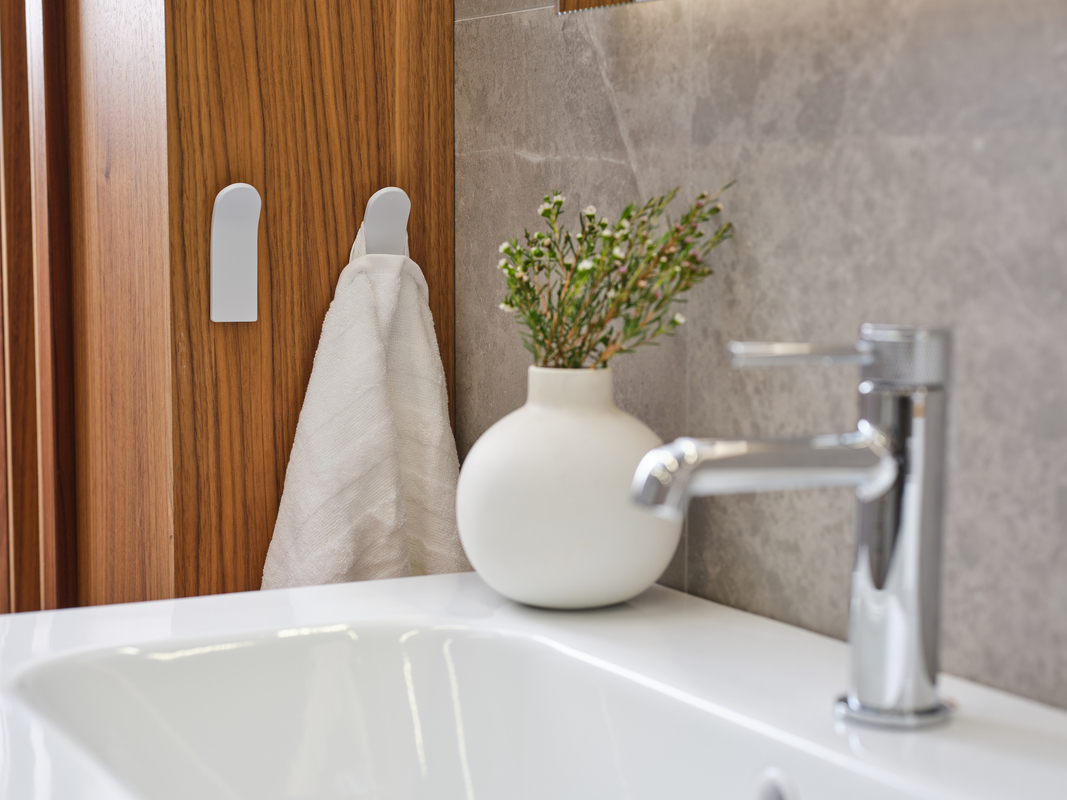 Selvklæbende højkvalitetskrog i rustfrit aluminium. Moderne og stilfuld krog. Perfekt i rum, hvor du ikke ønsker at bore i væggen. Anbefales til brug på jævne og glatte overflade såsom fliser. Vi anbefaler ikke at bruge produkterne på tapet eller lignende, da det kan forårsage skader, når produktet fjernes.