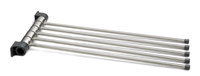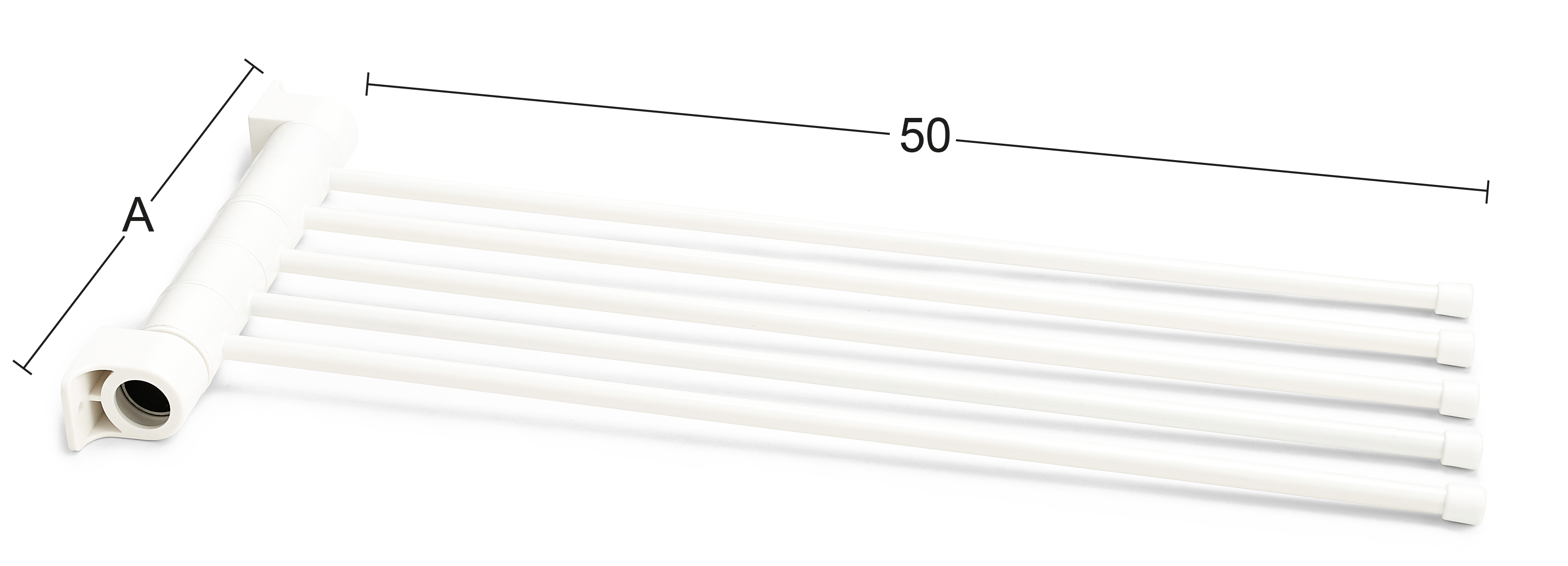 Håndklædeholder i rustfrit eller hvidlakert stål. Monteringsplade af hårdtplast. 10 mm svingbar arme med plastbøsningen. A=længde.