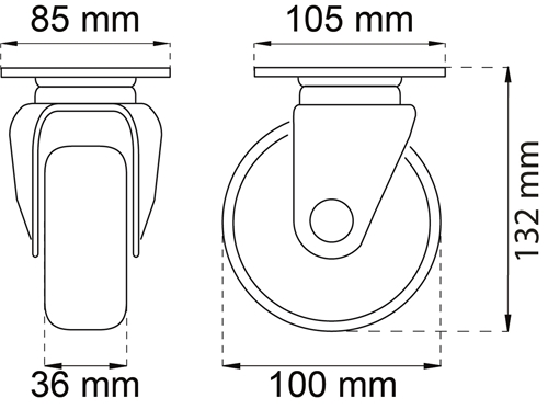 Containerhjul drejeligt med plade 85x105 mm. Ø100 mm. Maksbelastning 160kg. (Beregnet værdi - garanteres ikke).
