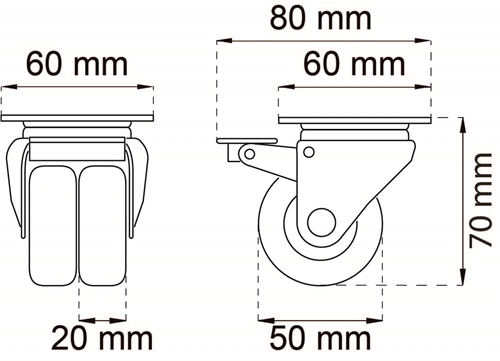 14059 | 1246834 | Møbelhjul dobbelt med plate og bremse | 4105 | Elforzinket | ST | 70 kg |