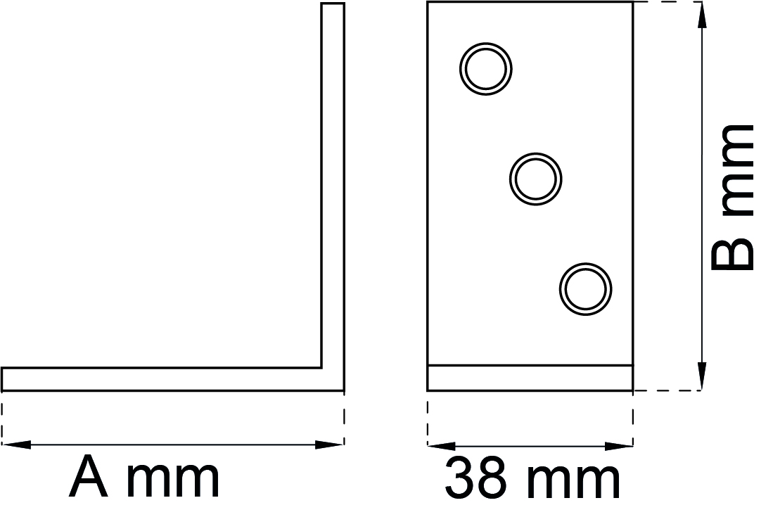 Vinkeljern af stål. Godstykkelse 2,5 mm. 64x64 mm.