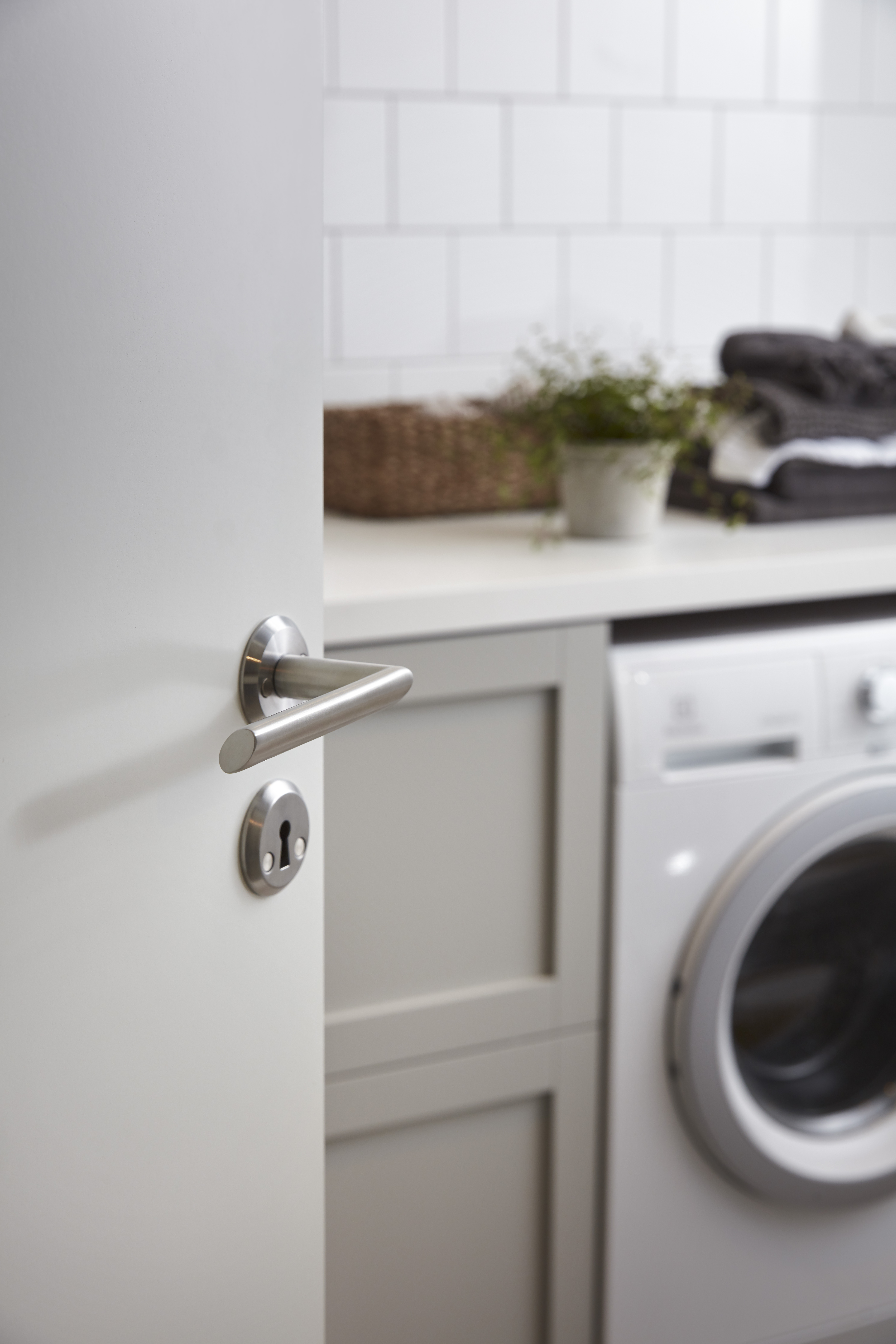 Dørgreb af rustfrit stål. Stramt og minimalistisk Dørgreb passende til moderne design. Til indvendige døre 38-42 mm. Fremspring 60 mm.