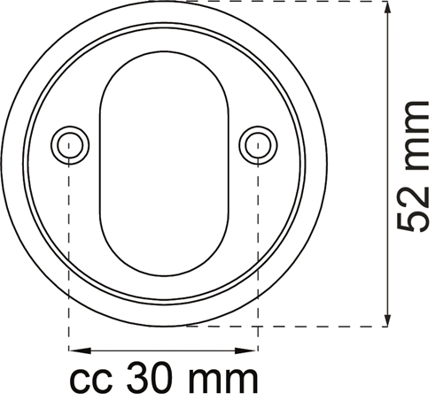 Cylinderring af børstet rustfrit stål. Anvendes ved indvendig montering. Højde 13 mm. C/c 30 mm. Leveres med 2 stk. M5 x 90 mm knækskruer torx 10.