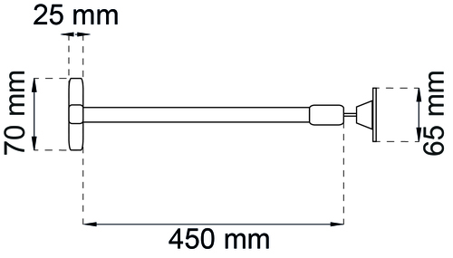 Dørbremse til udadgående døre med montering på stop-siden. Dørbredde 700 til 910 mm. Fast rør og teleskoprør af lakeret stål. Stang i rustfrit stål med leddelte hoved og plastjusteringsbøsning.