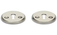 Nøgleskilt af zink/zamak i samme design som dørgreb Alicante. Leveres med skruer til gennemgående montering. Passer til dørtykkelse 38-42 mm.