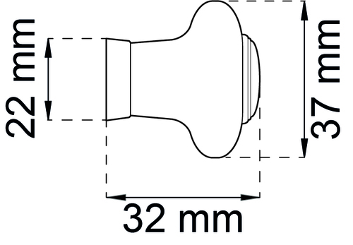 Møbelknop i porcelæn med detaljer i krom. Ø: 37 mm. Fremspring: 32 mm. Skrue medfølger.Leveres i en 1 styks forpakning. Dekorativ knop til låger og skuffer.