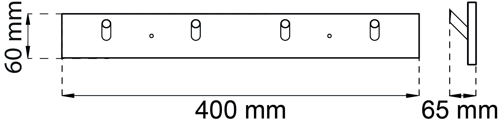 Knagerække med 4 knager i asketræ. Mål: 400 x 60 mm. Leveres i en 1 styks forpakning. Ny fortolkning af en klassiker.