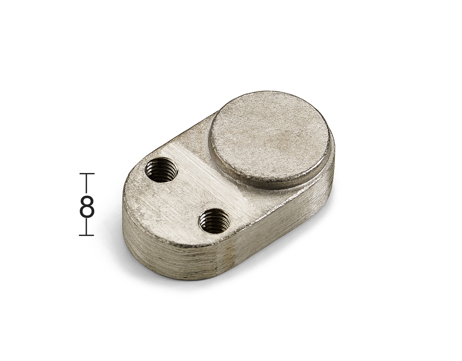 Cylinderblokering af stål. Anvendes sammen med dækskilt for øget sikkerhed, når der ikke ønskes udvendig låsecylinder. Højde 8 mm. Sælges i pakker med 10 stk.
