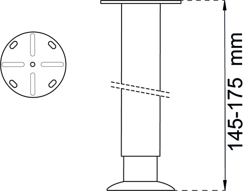 Bordben af børstet rustfrit stål, rundt Ø35. Højde 145 mm kan justeres til 175 mm for at kompensere for højdeforskel på ujævne underlag. Det giver en solid og stabil bordplade.