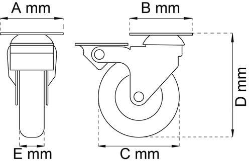 12956 | 1246939 | Møbelhjul drejelig med plade og bremse | 4005 | Transparent | ST | 42 | 42 | 50 | 66 | 20 | 40 kg | |||||||||