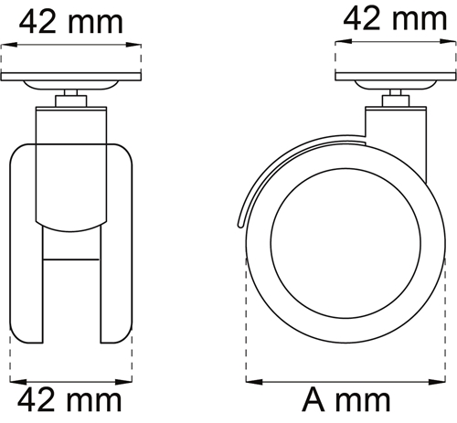 Møbelhjul med fast plade af stål og hjul af sort nylon. Ø50 mm. Maksbelastning 30kg. (Beregnet værdi - garanteres ikke).