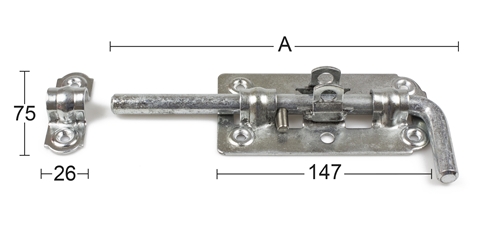 Skudrigle varmgalvaniseret, 230 mm låsbar for port, boltdiameter 14 mm, boltrør til nedstøbning, findes som ekstra tilbehør.