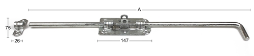 Skudrigle varmgalvaniseret 630 mm, boltdiameter 14 mm, boltrør til nedstøbning, findes som ekstra tilbehør. Pakket med skruer.