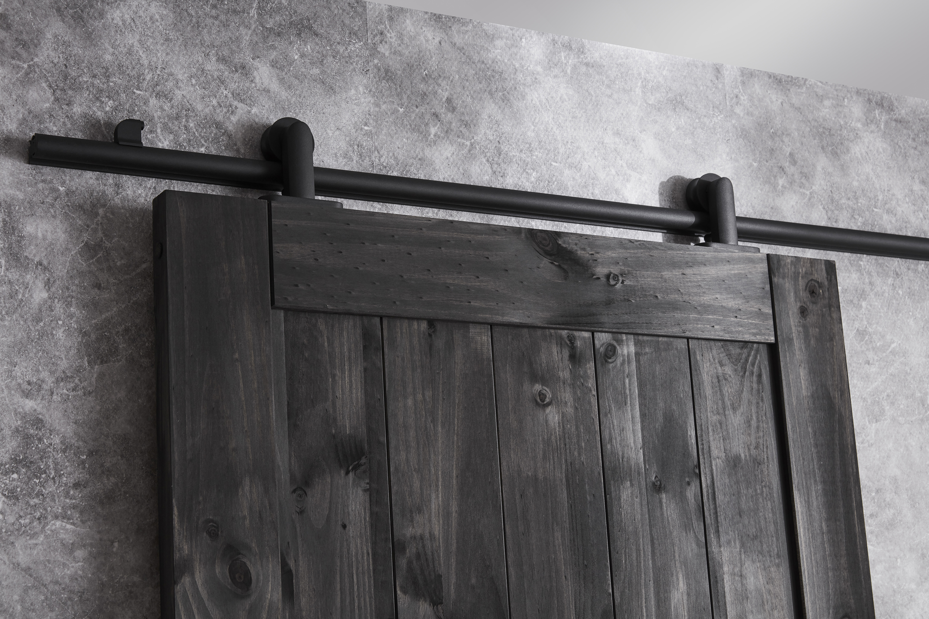 Komplet skydedørsbeslag i sortlakeret aluminium. Til vægmontering. Let at montere til både hjemmefixere og professionelle. Stilfuldt og moderne design, der tilføjer både funktion og personlig stil til hjemmet. Skjult fastgørelse takket være skinnen, der klikker over ophængsskinnen. Leveres med 2 topmonterede skydedørsruller, 2 meter skinne, 1 styreklods til glasdør, 1 styrelås til trædør, 2 stopbeslag, skruer og installationsvejledning. Beregnet til dørbredde maks. 100 cm. Dørvægt max 90 kg. Passer til døre med dørblade 35-45 mm.