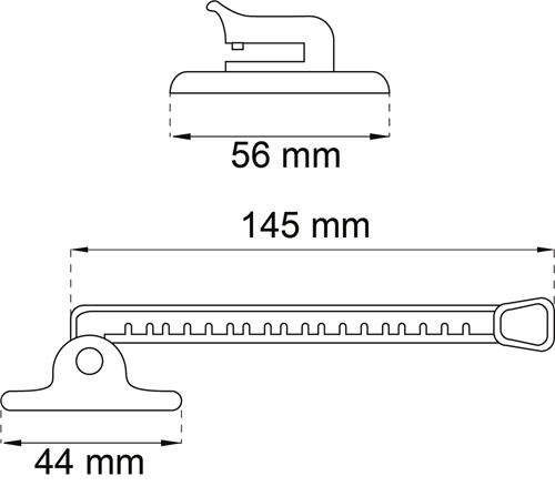 Vinduesholder plast, udadgående. 145 mm, ikke børnesikker.