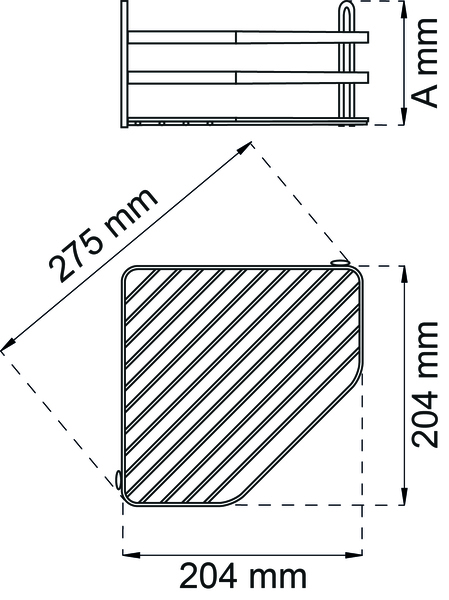 Kulmasuihkukori terästä, ruuvikiinnitteinen (ruuvit eivät sisälly). Hylly käytännölliseen säilytykseen suihkutiloissa. Kolmen vuoden ruostumattomuustakuu.