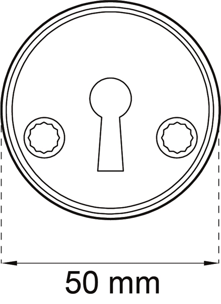 Avainkilpi sinkkiä/samakkia, yhteensopiva Alicante-painikkeen kanssa. Mukana ruuvit läpikiinnitykseen. 38-42 mm vahvuisiin oviin.