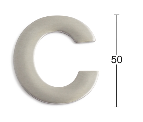 Kirjain C ruostumatonta terästä. Talon numeroiden, postilaatikoiden yms. merkitsemiseen. Itseliimautuva 3M-teippi, joka kiinnittyy useimpiin alustoihin, kuten teräkseen, lasiin, muoviin, postilaatikoihin jne. Korkeus 50 mm, vahvuus 3 mm.