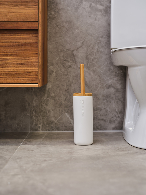 Toalettbørsteholder laget av polyresin og bambus. Moderne og stilren design som blir en vakker detalj på badet. Høyde inkl. skaft, 370 mm. Diameter 100 mm.