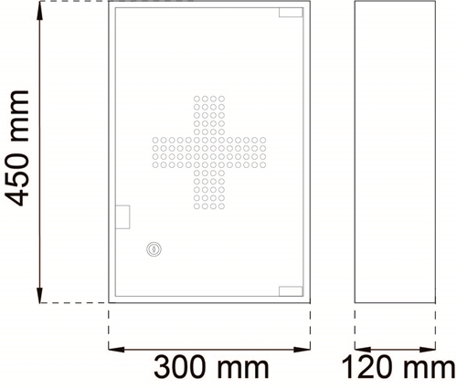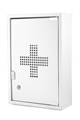 Låsbart medisinskap av pulverlakkert elforsinket stål. Skapet har to hyller til oppbevaring av medisiner, plaster etc. Leveres med to nøkler. Skruer for montering følger ikke med.