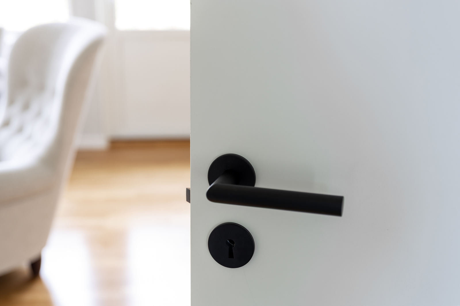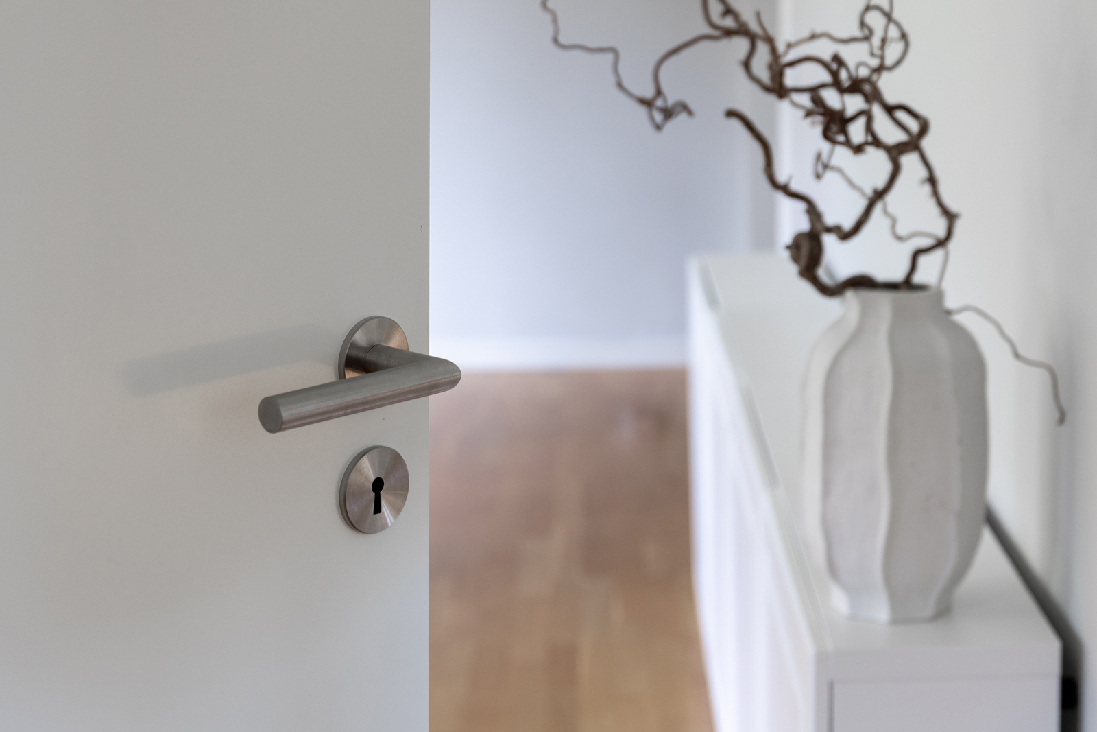 Dørhåndtak av rustfritt stål. Et stilsikkert håndtak for det moderne hjemmet. Passer dørtykkelse 38-42 mm. Finnes også som ytterdørshåndtak. Benytt alltid lengst mulig vriderpinne ved montering.