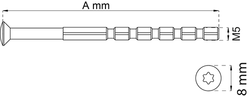 17079 | 49424022 | Kappeskrue uten hylsemutter M5 | Rustfritt | ST | 110 | Torx 10 |