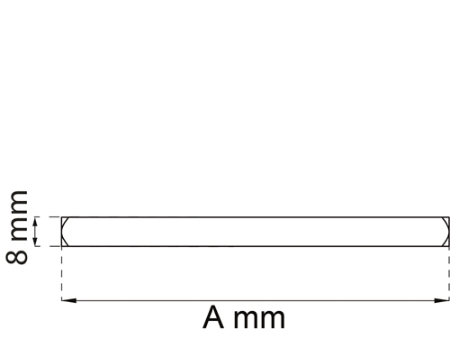 Vriderpinne av elforsinket stål. 8 mm. Benytt alltid lengst mulig pinne ved montering. Dersom for kort pinne benyttes kan dørvrideren knekke i halsen. Pinnen bør minimum gå 2 cm inn i vriderhalsen på hver side. På Habo vridere regner vi som regel dørtykkelse + 4 cm.