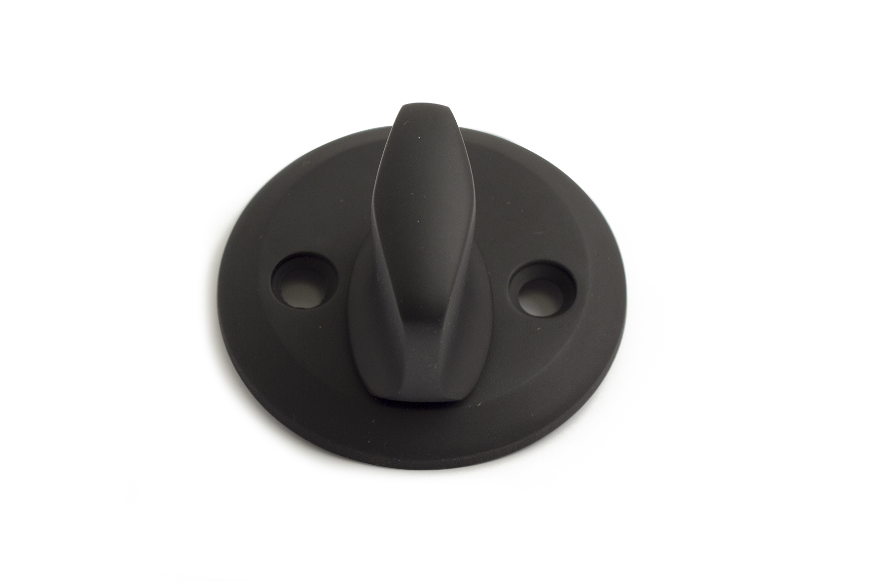 Knappvrider med skilt av messing. Leveres med 2 stk 5x75mm kappeskruer for gjennomgående montering. 2 stk sylinderskruer 28mm, og 1 stk 63mm sylindervriderpinne (medbringer) med skive. Passer til dørtykkelse 38-70 mm.