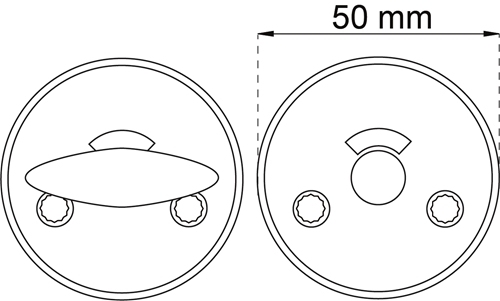WC-beslag av zink/zamak, i samme design som dørvrider Torino. Levereres med skruer for gjennomgående innfesting. Tilpasset dørtykkelse 38-42 mm.