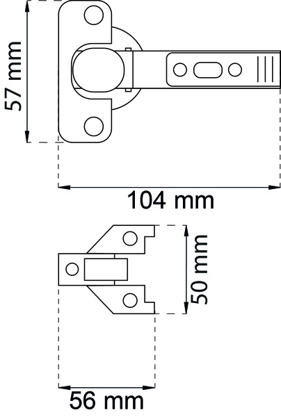 Selvlukkende skaphengsel av stål. Åpningsvinkel er 110 grader. Ø32 mm. Velegnet for renovering av gamle skap med "hule" sidevegger, slik at festebraketten må festes lengst mulig fram i skroget. Kun festebraketten er forskjellig fra andre hengsler av samme type. 2 stk. pr. pakke.
