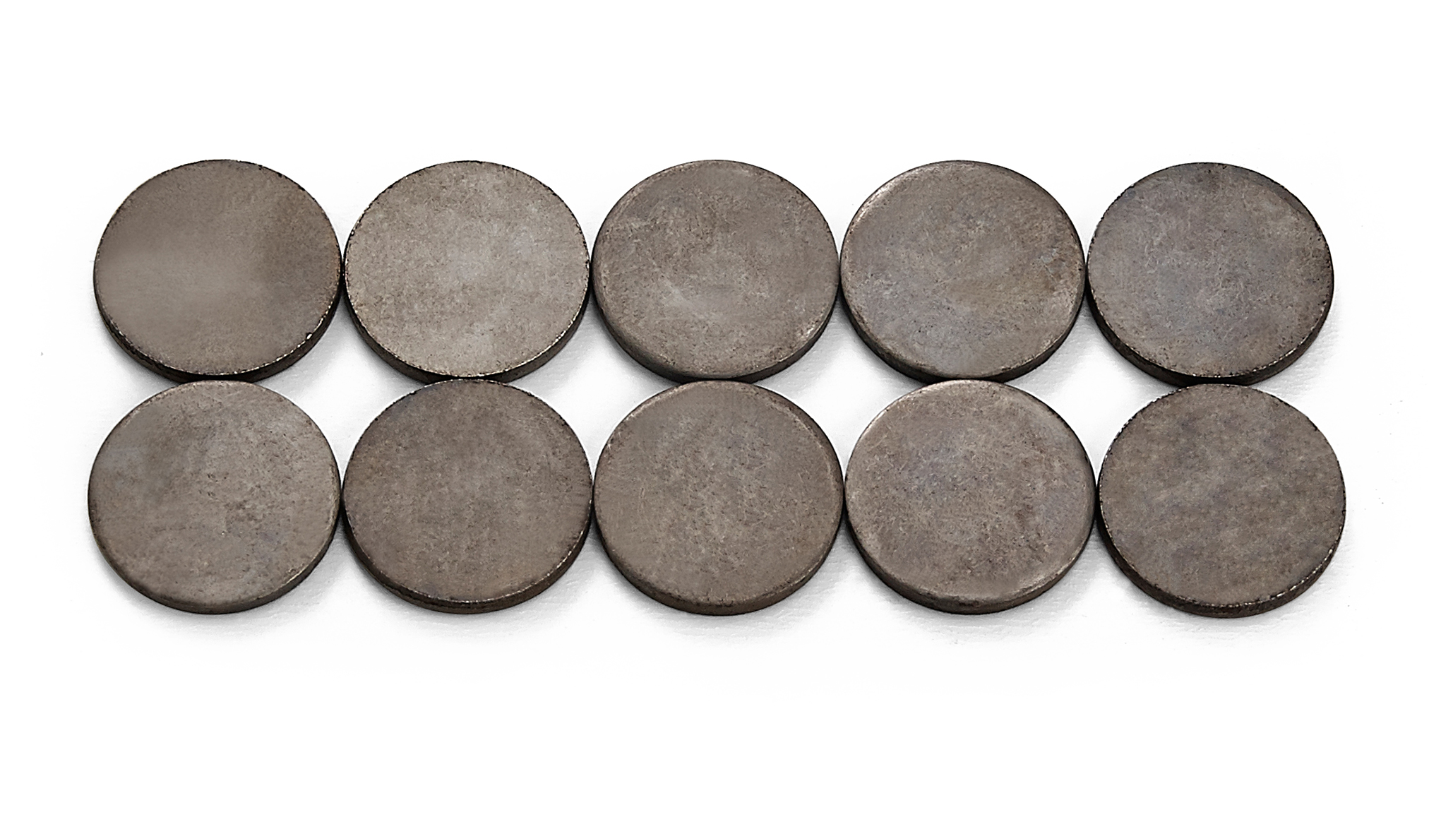 Justeringsbrikke av stål for hengsler. Diameter 7 mm. Tykkelse er 1 mm. 10 stk. pr. pakke.
