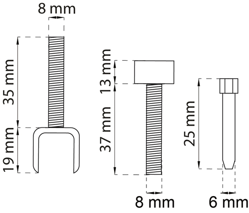 Innboringshengsel av stål. Tappen er løs og har en diameter på 8 mm. 2 stk. pr. pakke.