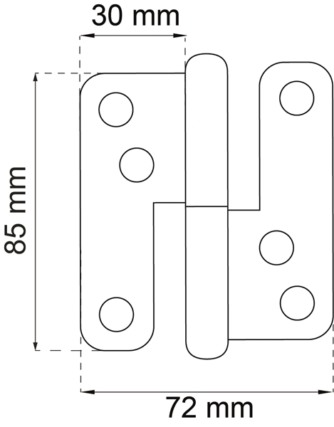 Løftehengsel av stål. Venstremodell. Inkludert skruer. 85 mm. 2 stk. pr. pakke.