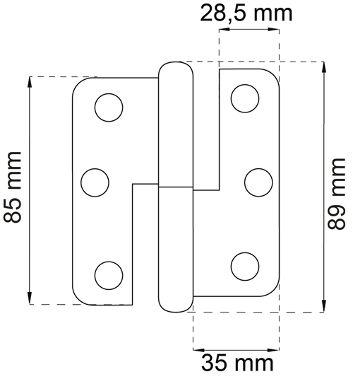 Dørhengsel løftehengsel. Venstremodell. Tapp av 7 mm rustfritt stål. For vindu og lette dører. Skruediameter 4,0 mm. Leveres i pakke med 2 stk.