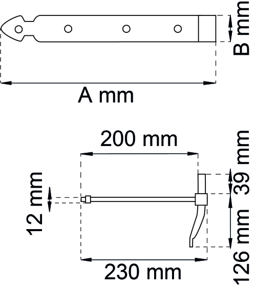 Stabelhengsel av stål. Tappdiameter er 16 mm. Med gjengestabel M12. Lengde 500 mm.