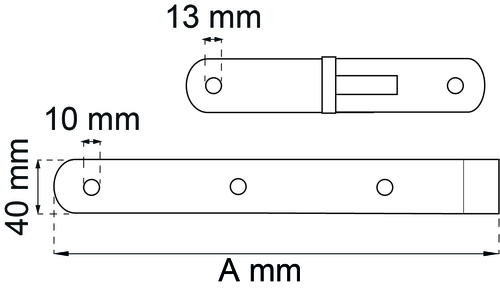 Bøyd stabelhengsel av stål. 40x1000 mm. Tappdiameter er 13 mm.