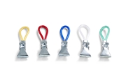 Klyper med hemper i assorterte farger. En bra løsning for håndklær uten oppheng. Maks åpning på klypa er 5 mm.
