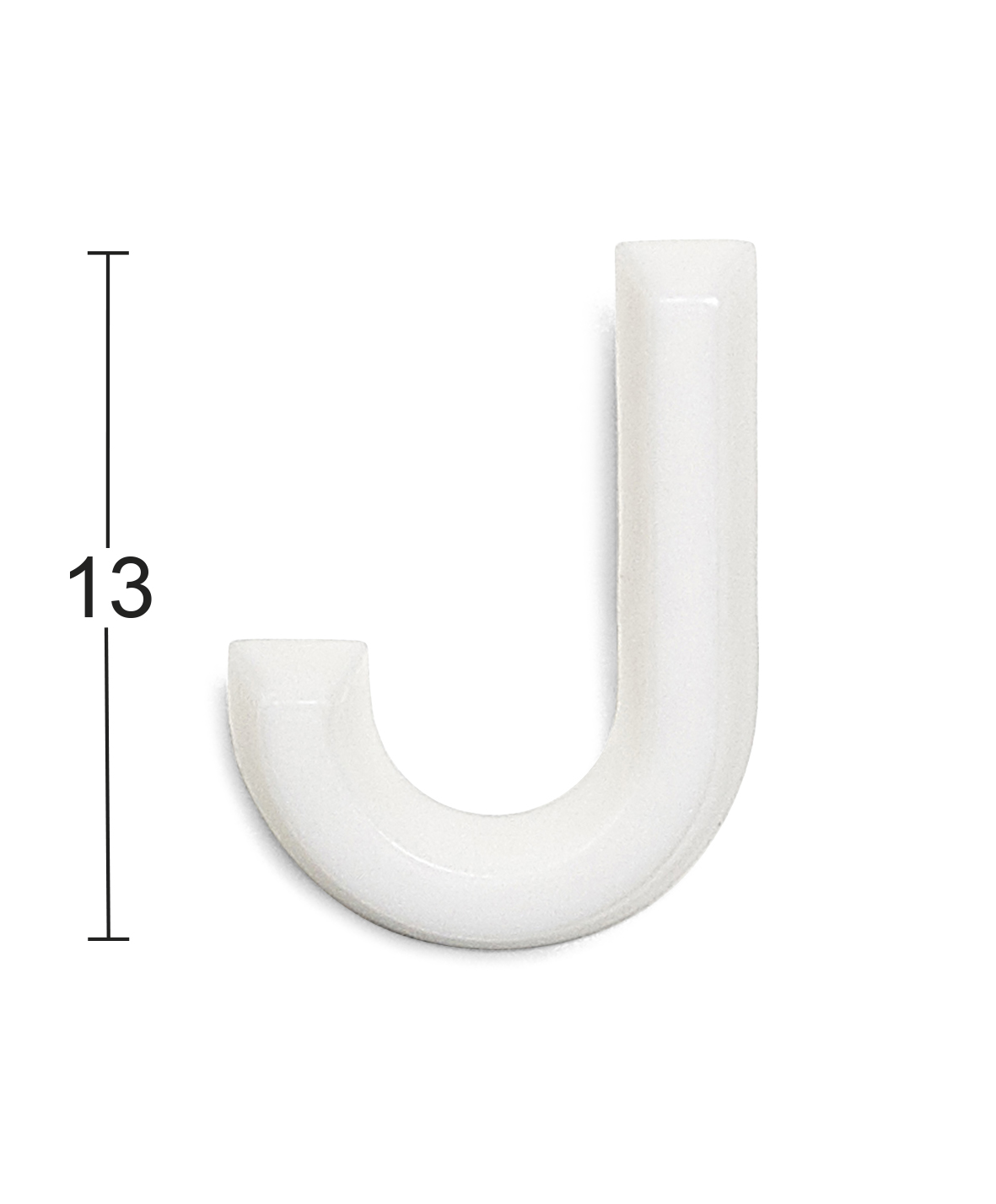 Bokstav J med brakett for festing på ujevn overflate. Høyde 13 mm. Leveres i pakker med 10 stk.