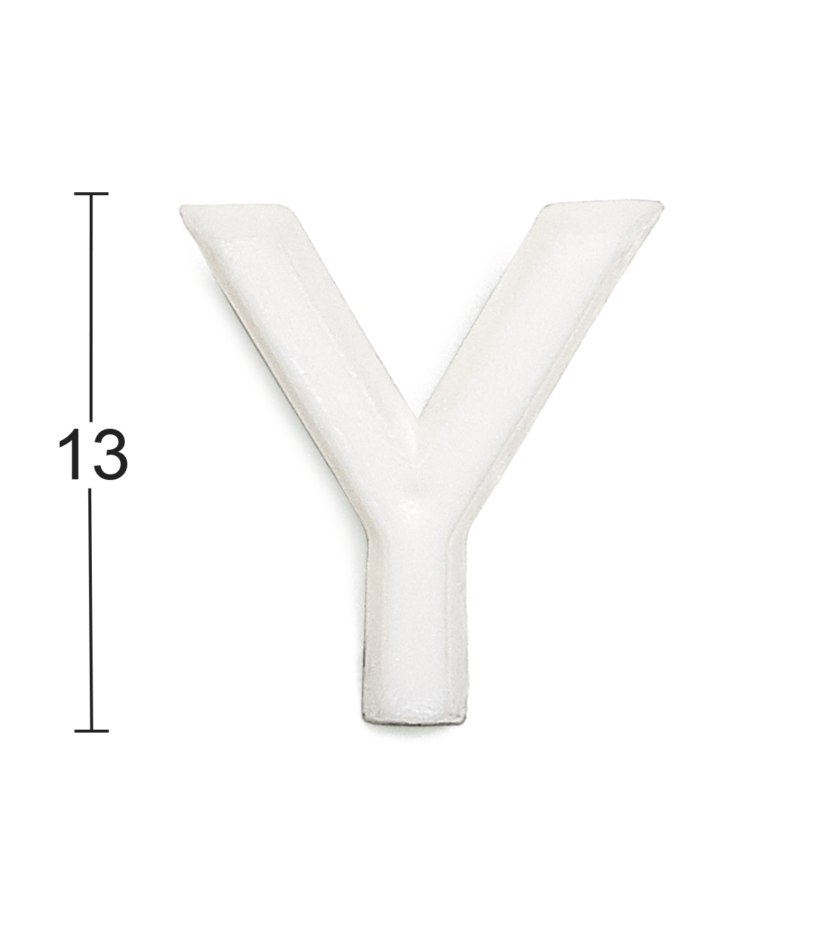 Bokstav Y med brakett for festing på ujevn overflate. Høyde 13 mm. Leveres i pakker med 10 stk.