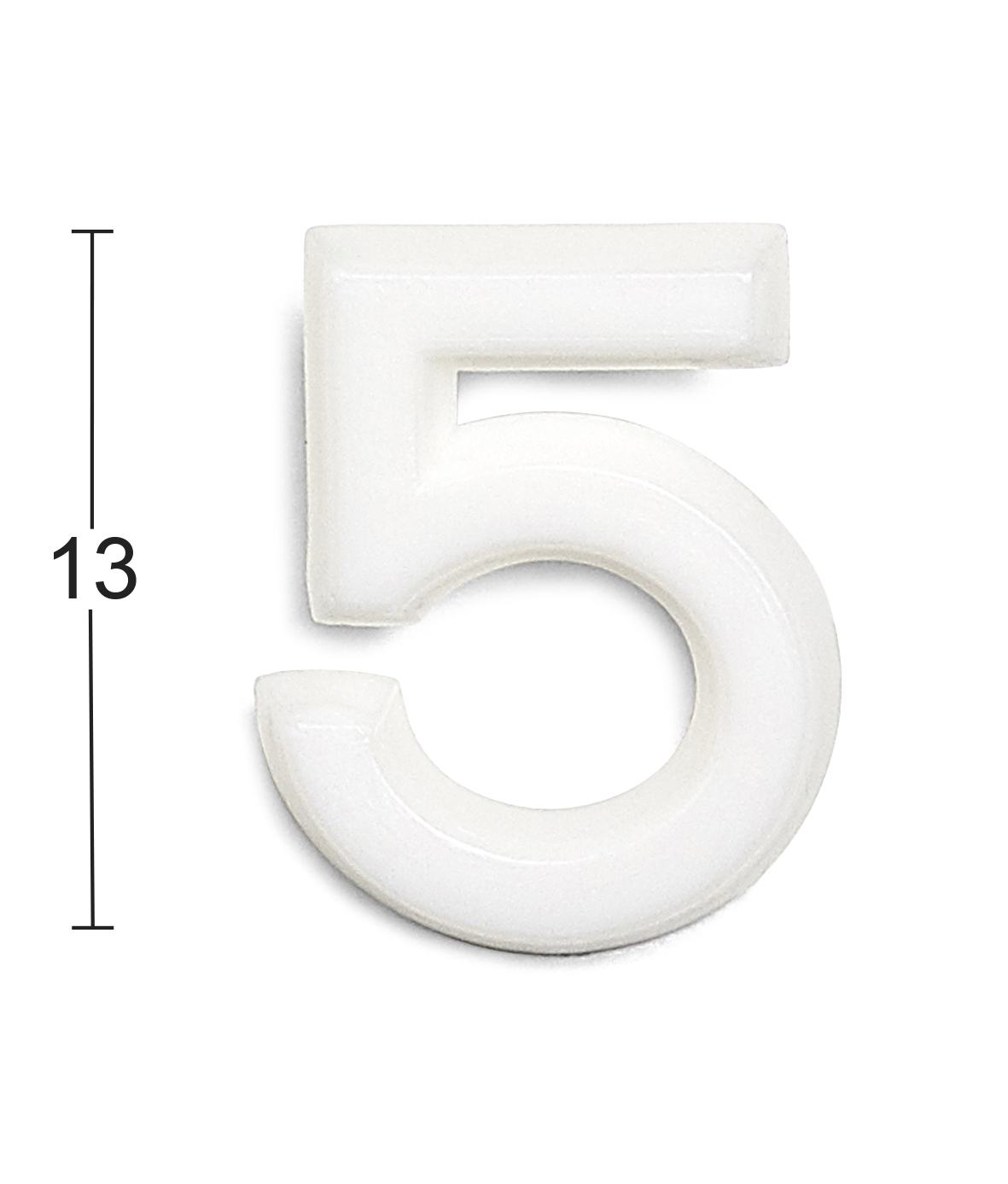 Tall 5 med brakett for festing på ujevn overflate. Høyde 13 mm. Leveres i pakker med 10 stk.