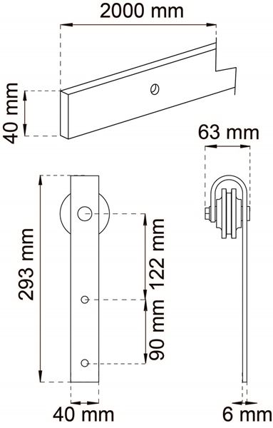 Komplett skyvedørsbeslag i stål. For veggmontering. Enkel å montere for både hjemmefiksere og profesjonelle. Robust og industriell design som gir både funksjon og personlig stil til hjemmet. Leveres komplett med 2 stk frontmonterte skyvedørsruller, 2 meter flat skinne og øvrig tilbehør. Beregnet for maksimal dørbredde 1000 mm. Passer til dørtykkelse 20-40 mm. Dørvekt maks 100 kg. Sporet i rullen er 9 mm bredt og 6 mm dypt. Bygger ut 58 mm.