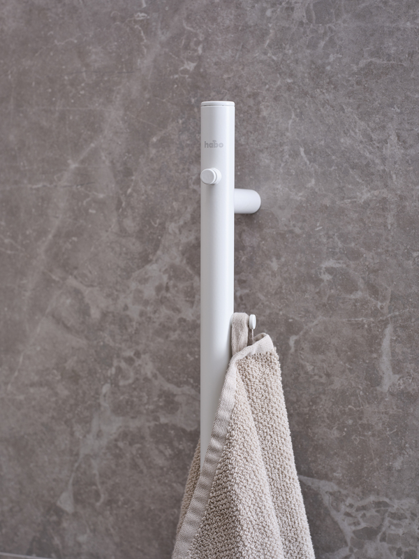 Handdukstork i stilren och modern design. Perfekt för trånga utrymmen. Med fyra krokar. Mer information och detaljer