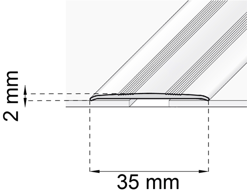 Självhäftande skarvlist för att täcka skarvar mellan olika golv i samma nivå.
