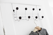 Rymlig krokrad för upphängning av kläder, handskar, påsar osv på dörren. Passar lika bra i barnrummet som i hallen.