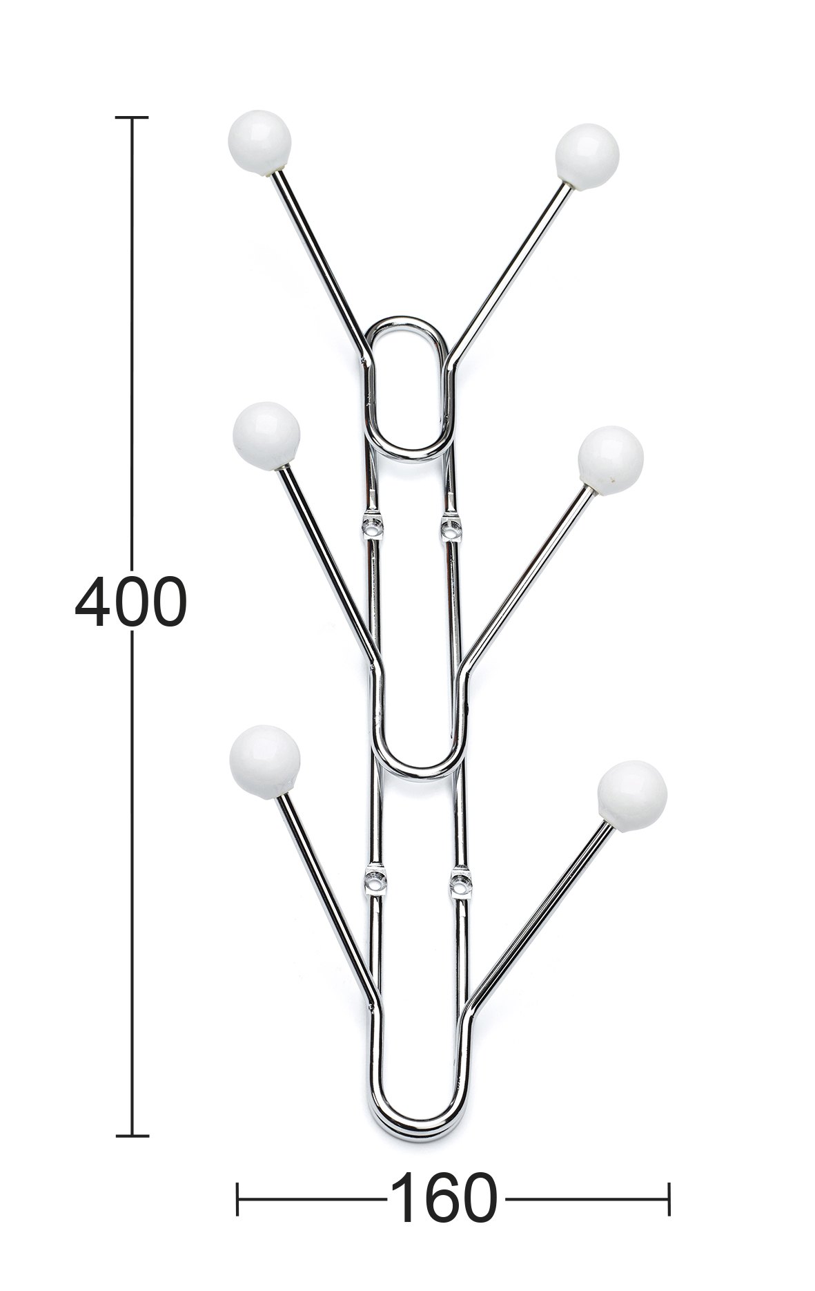 Krokrad av förkromat stål med vita knoppar av porslin. Höjd 400 mm.