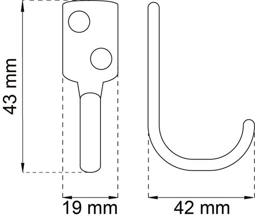 Enkelkrok av zink/zamak. Utsprång 42 mm.